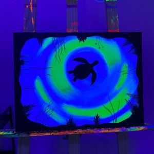 L’activitat consisteix a pintar un quadre amb pintura fluorescent mentre gaudeixes d’una copa de vi o de la beguda que prefereixis. Deixa que la teva versió més creativa i les teves emocions surtin a la llum en un ambient relaxat i divertit.